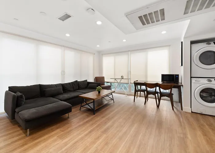 O apartamento Spacious 1-Bd Hideaway Close To Usc Room With Share Livingroom oferece cozinha totalmente equipada, bem como quartos com mesa de trabalho, máquinas de café/chá e TV. Centro de Ciência da Califórnia fica 2.2 km da propriedade, Sala de Concertos Walt Disney fica aproximadamente de 7 km de distância.